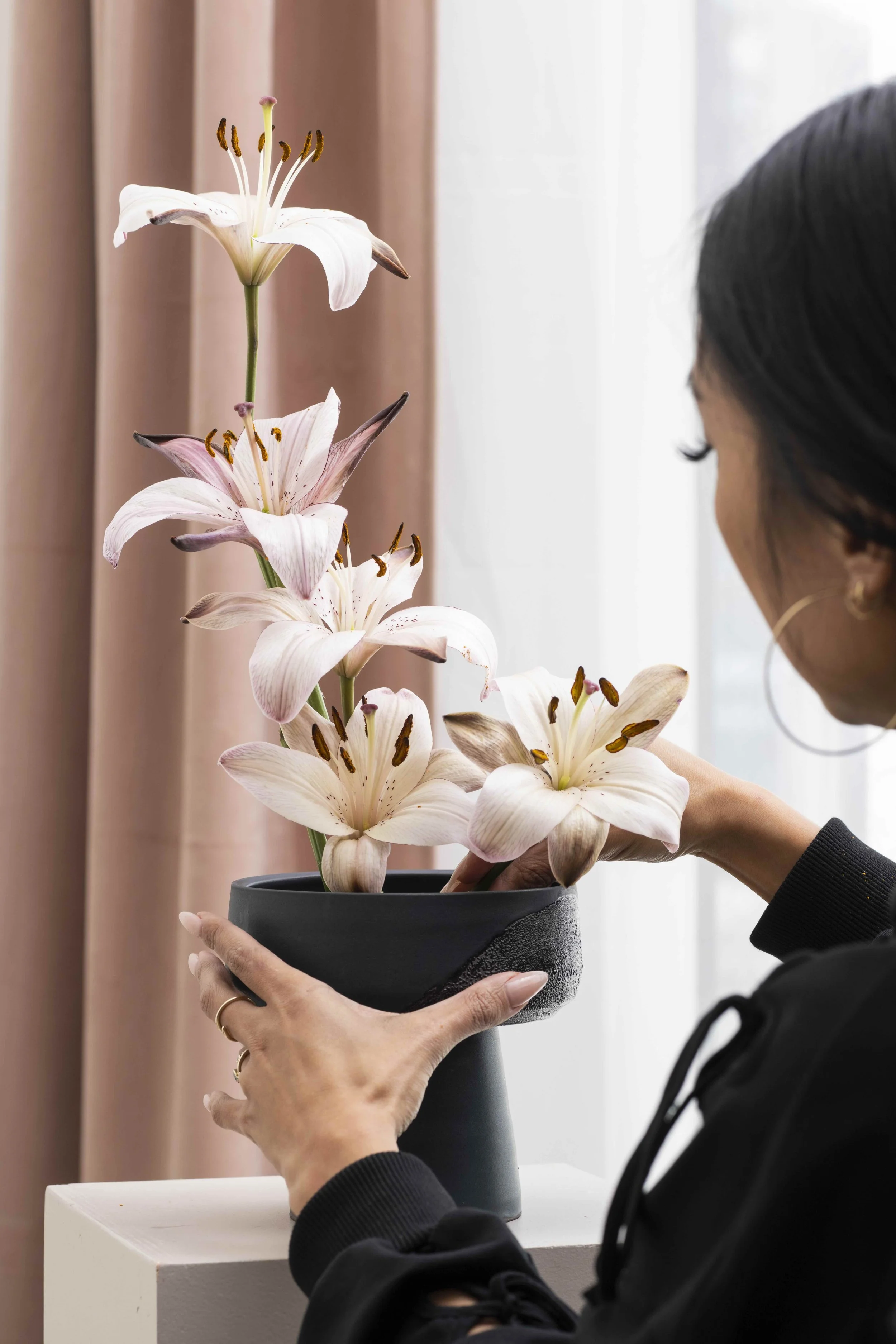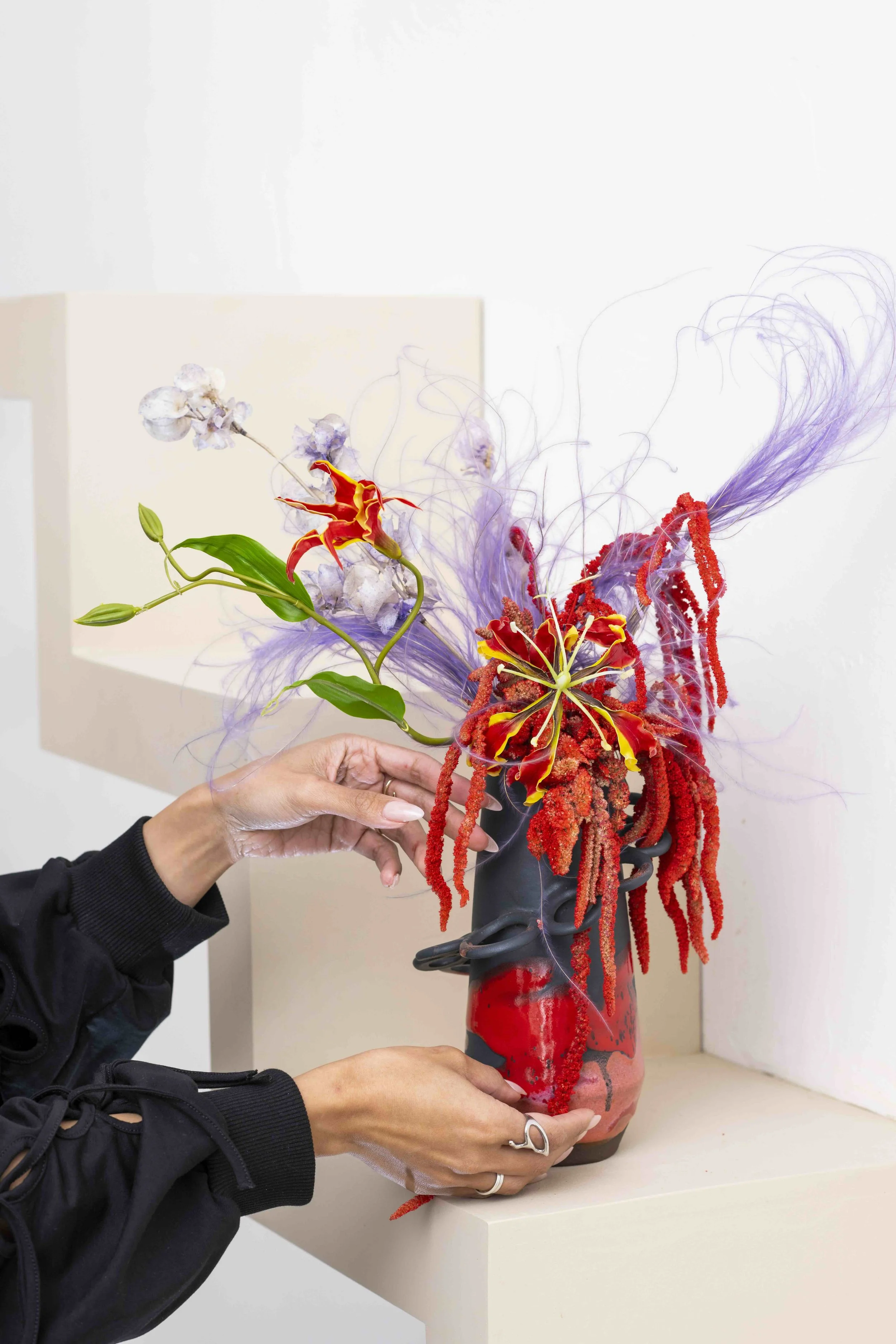 Florist Veronica Llave styled and filled Erin’s Orbit vase, making use of each orbiting bracelet in their collaboration.