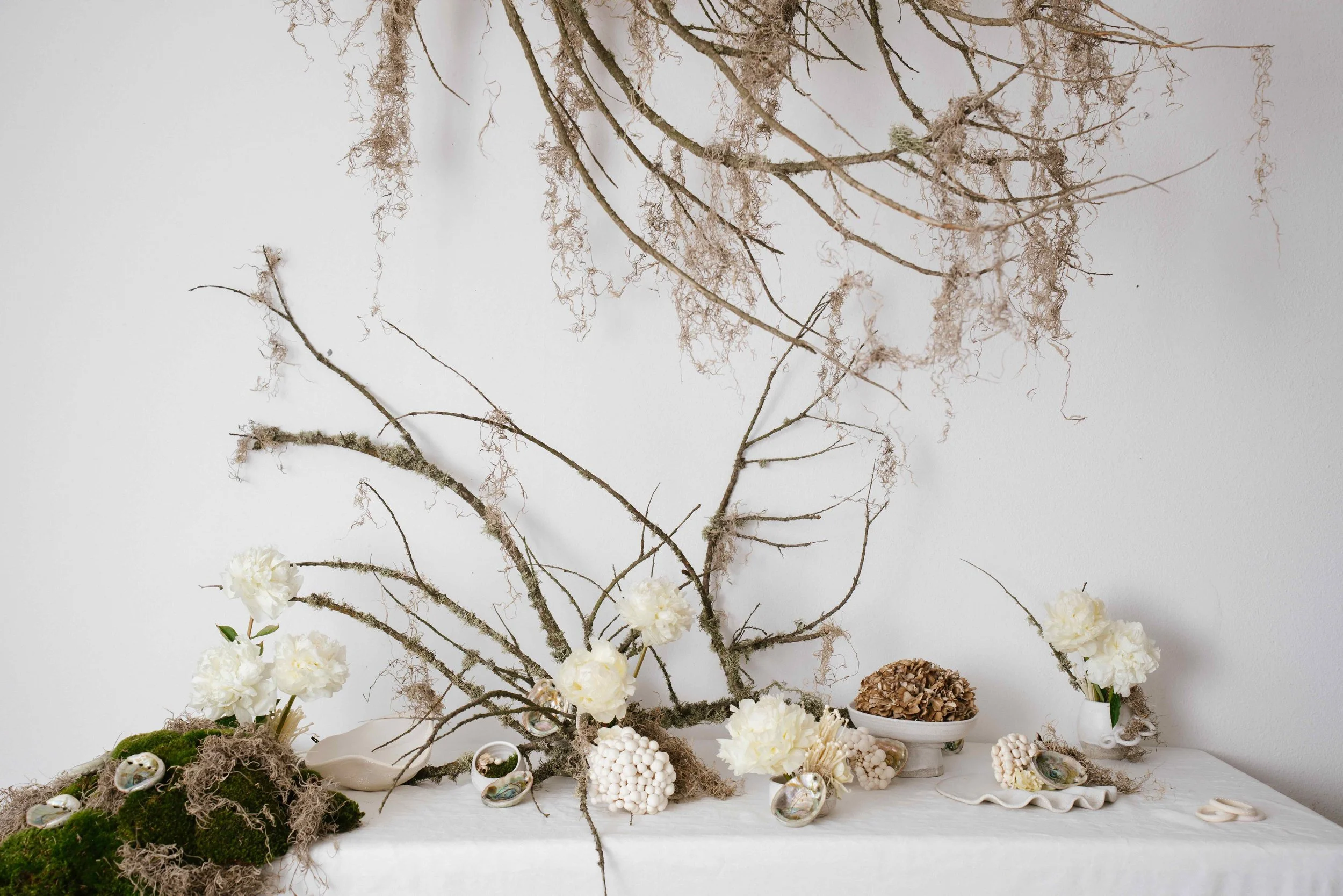 Erin collaborated with Amanda Akoto-Lerand on a gorgeous tablescape featuring mushroom, moss and abalone shells that celebrated the Mother in all of us.